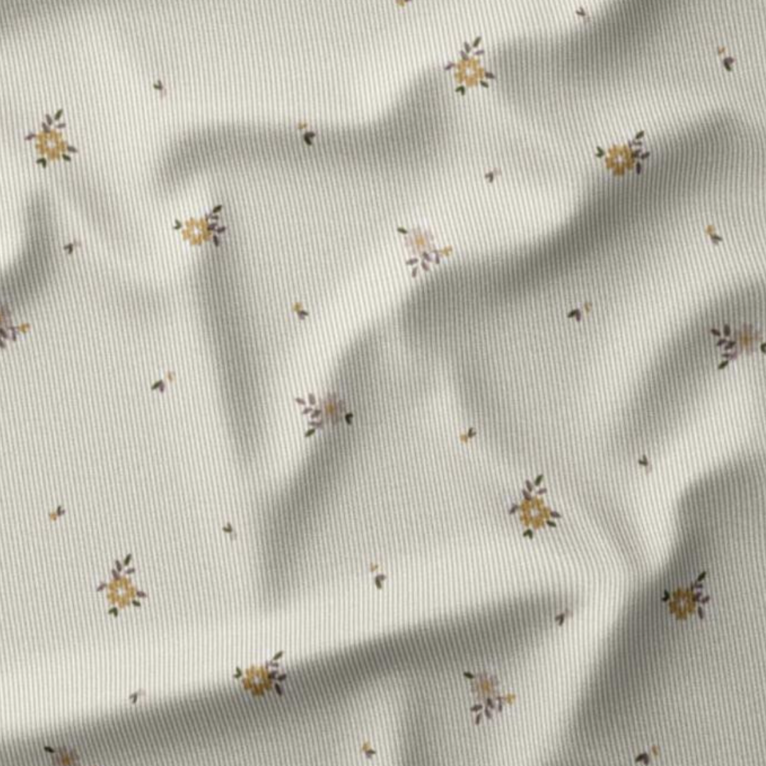 Avec sa couleur douce et neutre imprimée de jolis motifs floraux, ce tissu ajoutera une touche de joie et de fantaisie à toutes vos créations.